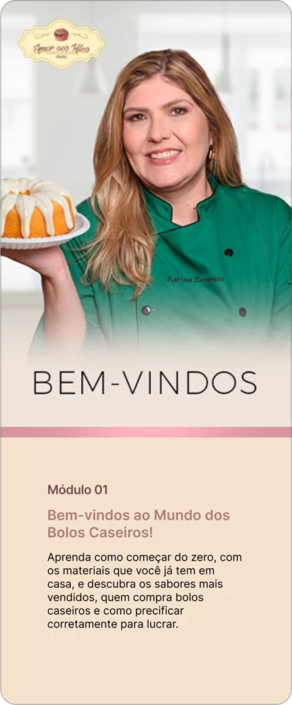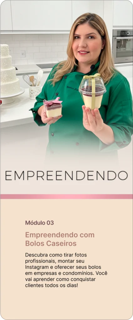 Premiada como “Top of Mind” 2022 e 2023, e ganhadora do prêmio Mulher que Faz 2024, Karina é considerada uma das confeiteiras mais inovadoras do setor, sendo procurada por quem deseja aprender como fazer bolos caseiros que vendem e fidelizam clientes.